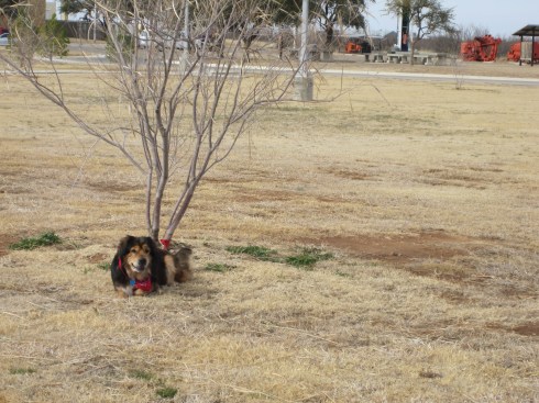 - Right smack dab in the middle of all the nothing (translation: Midland, Texas) are three of the nicest people I’ve ever met. On Wednesday afternoon, Teddy and I pit-stopped at the Texas Visitors’ Center there, desperately in need of a wee. The Visitors’ Center was the only place we could find that had anything approximating a grassy patch for Teddy’s…uh hum…convenience. (Do you have any idea how hard it is to find a grassy patch of any kind–either green or brown–anywhere south and west of Gainesville, Texas?) Anyway, after Teddy had taken care of business, I decided to loop his leash around the base of a tree so he could sit outside and enjoy the fresh air and sunshine–as opposed to sitting in the car–while I went inside for my own pit stop. He wasn’t having it. Barked like a maniac, so I took him up to the patio in front of the building and tried looping the leash around a park bench set in concrete by the front door. Again, Mr. Separation Anxiety wasn’t going for it, so I poked my head in the door and asked if pets were allowed in the Center. A very sweet-looking lady looked up and shook her head slowly, but when she saw the desperation in my face and the Tedster sitting out on the sidewalk, she jumped up from the desk, saying, “If you have an dog out there, I’ll be happy to watch him for you,” followed by, “He doesn’t bite, does he?” as she headed for the door. She was outside introducing herself to Teddy before I could even answer. By the time I got back outside less than five minutes later, all three employees (the only three people within 50 miles of the Center) were out on the patio, fussing over His Royal Fuzz-Buttness–one of them snapping pictures of Teddy like he was a visiting dignitary. Of course, in Teddy’s world, he is. What a ham! He has yet to meet a stranger. I wish I’d gotten a picture of those lovely people. You need to stop in and meet them.