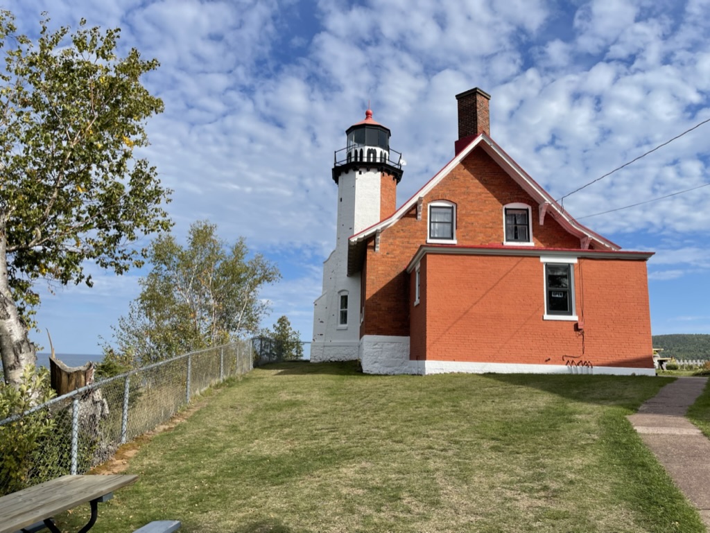 Again, a camera phone picture. This is the Copper Harbor Lighthouse in Copper Harbor, MI, literally the very northern tip of the state. After viewing this lighthouse from across the bay (visitors aren’t allowed), we went to Eagle Harbor (shown below) where you can go into the lighthouse to see what life was like for the lightkeepers back in the day. We couldn’t climb all the way to the top of the light tower because it’s still a working lighthouse, but we did get to tour the attached house and see what it would have been like for the lightkeeper and his family. It’s abundantly clear that those folks were made of tougher stuff than I am. Inside, the home looked much like other recreated homes of the late 1800s/early 1900s that I’ve seen in museums in other parts of the country. From any or all of those examples, it’s safe to say that life at the turn of the last century was no domestic cakewalk. Have you seen their toasters? Their ovens? But the striking difference (terrifying difference, actually) between those homes and this home/lighthouse is that it sits on a giant granite boulder jutting out into Lake Superior where the average snowfall is over 200 inches and the wind blows so hard the snow freezes in horizontal striations. Not for sissies. Thankfully, it was a beautiful fall day, and we enjoyed our visit immensely. We would highly recommend stopping here the next time you’re in the neighborhood!