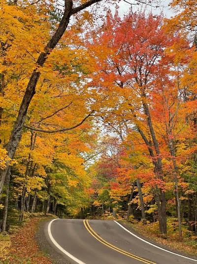 If you’re a leaf-peeper, we can’t recommend Highway 41 between the turn-off to Gay-Lac LaBelle Road and Copper Harbor highly enough. Not only are the colors incredible, but the trees form a canopy over the road for nearly 10 miles. You feel like you’re wrapped in a fall quilt. Better yet, swing by the Wood’n Spoon in Mohawk and grab some of their delicious homemade cookies to nosh on (we can highly recommend the Snickerdoodles and the peanut butter cookies) while you’re driving and gawking. While you’re there, you might as well grab a jar of homemade Wild Thimbleberry Jam, another UP favorite, to have for breakfast tomorrow while you watch the storm over the lake from the safety of your living room…or something like that. It’s not a bad life. Both the pictures above are from that stretch of road.