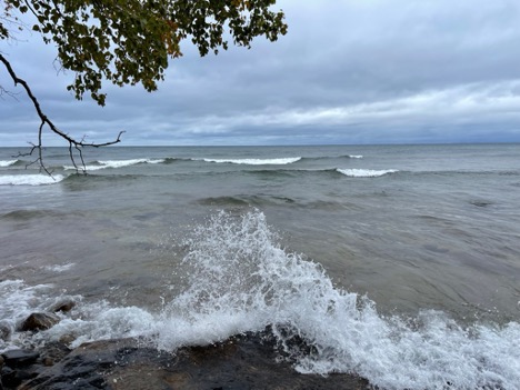 The dramatic change on the main body of the lake and the speed with which the change happened made it abundantly clear (if it wasn’t already) why Lake Superior can be so dangerous even for experienced mariners. The second thing we learned (because we googled “Storms on Lake Superior”) is that besides the weather and surface changes that happen in the blink of an eye, the average temperature of the water is 42 degrees, and it’s nearly 1,400 feet deep. You do not want to capsize on this lake. As we continued reading, we learned that because the water is so cold, bacteria can’t do what bacteria do, so bodies don’t float. They sink to the bottom, never to rise again, and don’t decompose. As one writer put it, Lake Superior doesn’t give up its dead. Rather gruesome, but something to consider before ignoring the warnings. We shall consider those lessons learned.