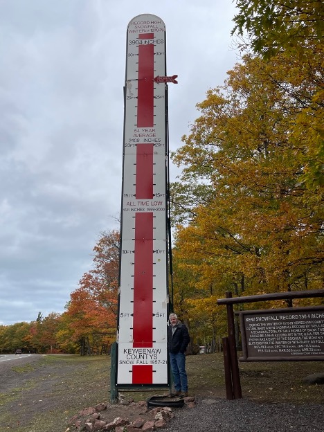 On a lighter and happier note, a quick drive through a couple of our favorite stretches of fall foliage this afternoon proved me wrong about the wind blowing the leaves off the trees (see my previous post). Those suckers looked almost exactly like they did the day before the storm. Apparently, the trees up here are as tough as the Yoopers who, by the way, survive ungodly amounts of snow every year. Last year, they got 27 feet of snow. Check this out: